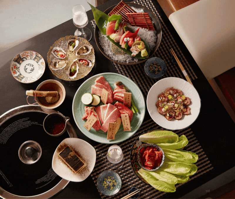 Choose between an intimate couple set menu that explores Japanese techniques from sashimi to charcoal yakitori, or a free flow yakiniku experience centred on grilling premium wagyu together at the table.