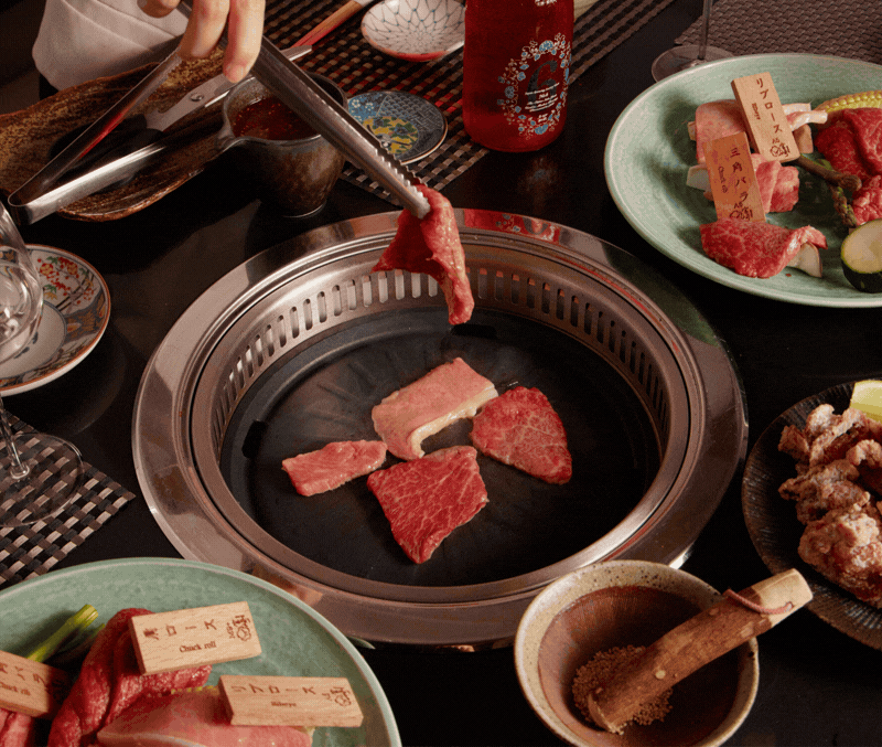 Indulge in our Yakiniku Free Flow Set featuring unlimited A5 Miyazaki Wagyu flown directly from Japan, with the theatre of grilling at the table.